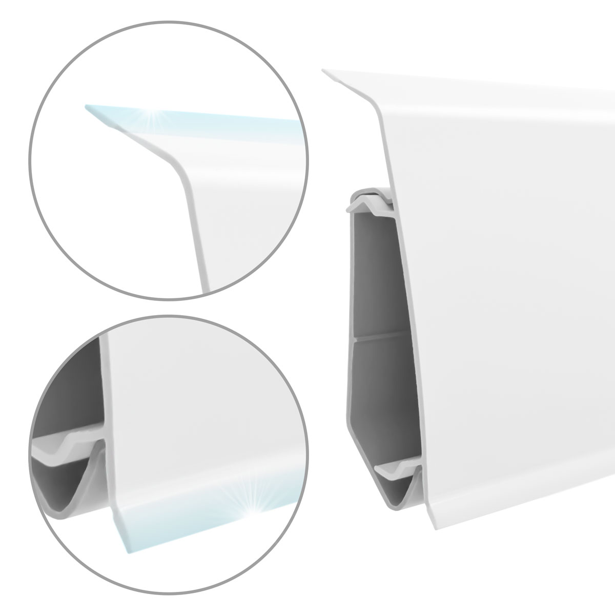 Mit 70 Millimetern in der Höhe und 20,7 Millimetern in der Breite ist die Leiste “VEO” die höchste und zugleich schmalste Leiste in unserem Sortiment, lässt sich jedoch genauso einfach in wenigen Schritten montieren und liegt äußerst dicht an der Wand an.