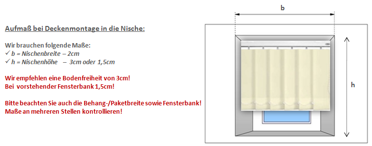 **Wichtiger Hinweis** Die Bestellbreite entspricht der Anlagenbreite! Die Bestellhöhe entspricht Oberkante Schiene bis Unterkante Lamelle!